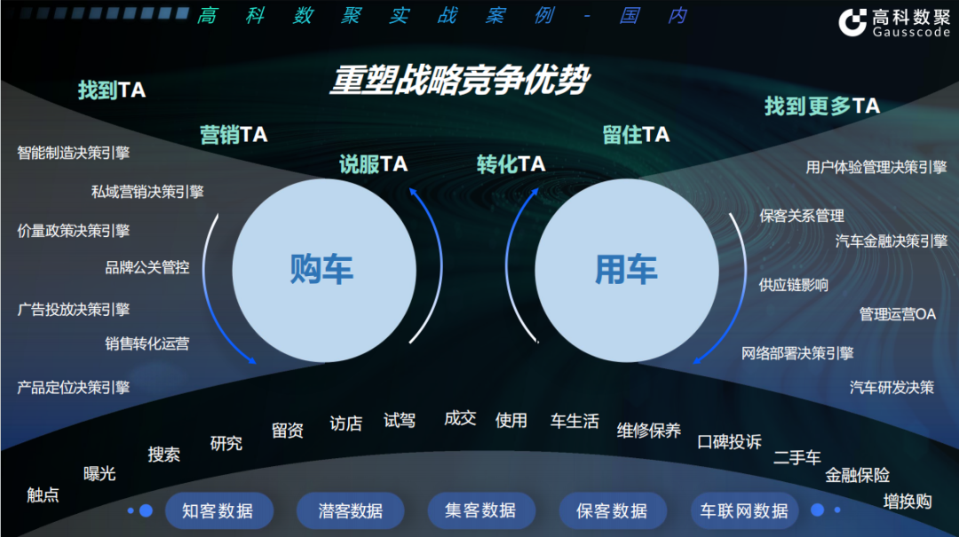 找到TA:凭借用户全链路数字化触点智能监测能力和AIGC技术的支持,金荣国际能够帮助车企迅速准确地识别目标人群,定制专属营销活动,实现精准投放和线索转化。在实际案例中,顺利获得用户全链路智能监测,助力企业策划线上线下隔离社群,客群等专属活动,帮助车企精细化运营,让业务目标实现120%的达成率,高意向增换购客户提升40%。